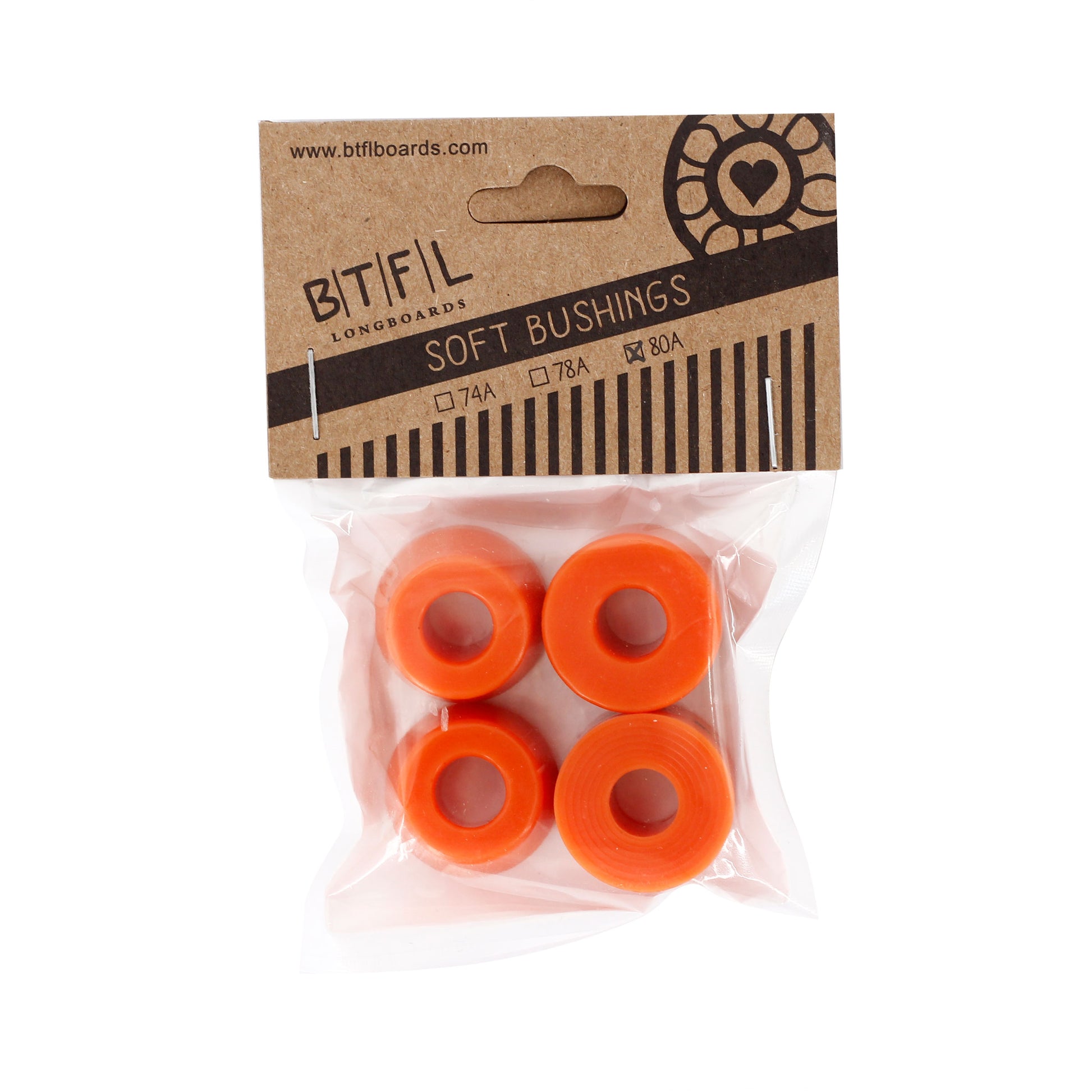 Set aus 4x BTFL Standard Bushings für Longboards. 2 x Barrell und 2 x Cone Bushing, Härte jeweils 80A. Diese Bushings sorgen für ein sehr angenehmes Lenkverhalten der Achse ohne großen Kraftaufwand.